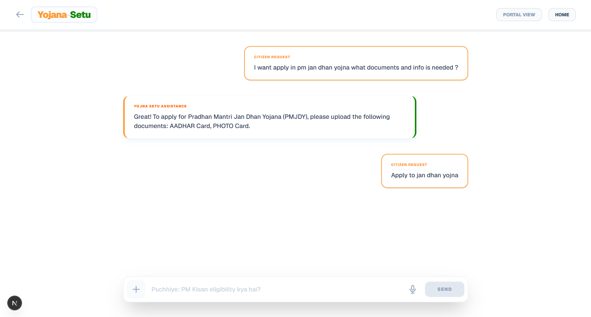 Empowering citizens and facilitators alike. Yojana-Setu simplifies the complex world of government schemes through a seamless interface designed for every Indian.